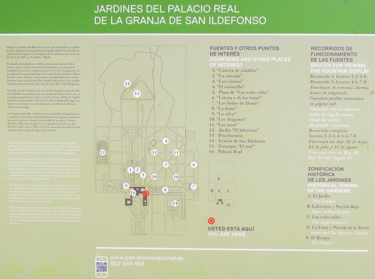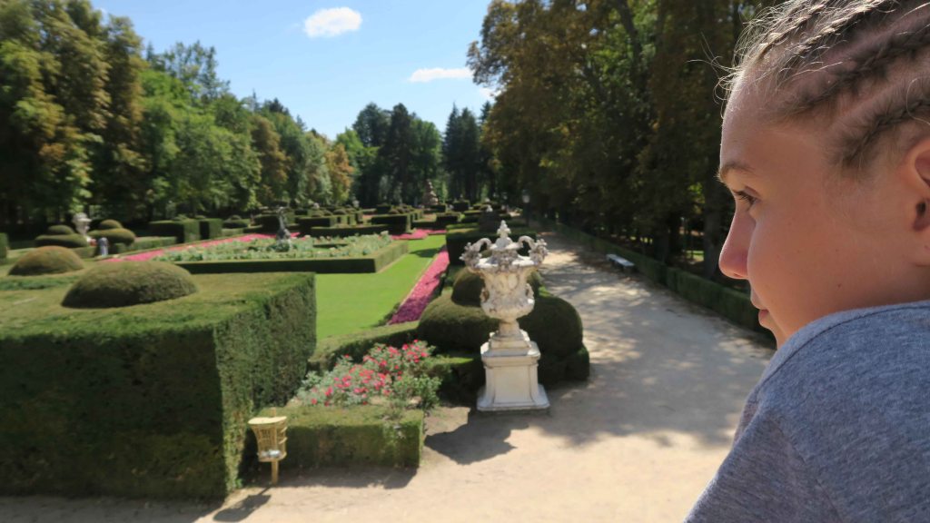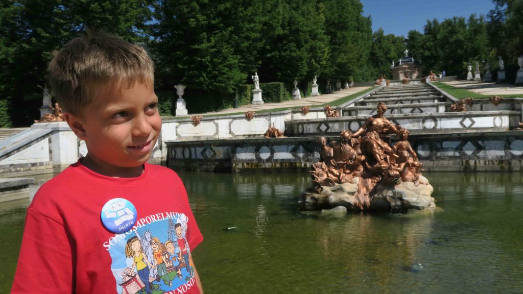Era tarde para visitar el palacio y los jardines. Decidimos lo mejor para los peques, hacer un recorrido por los jardines y fuentes del Real Sitio.