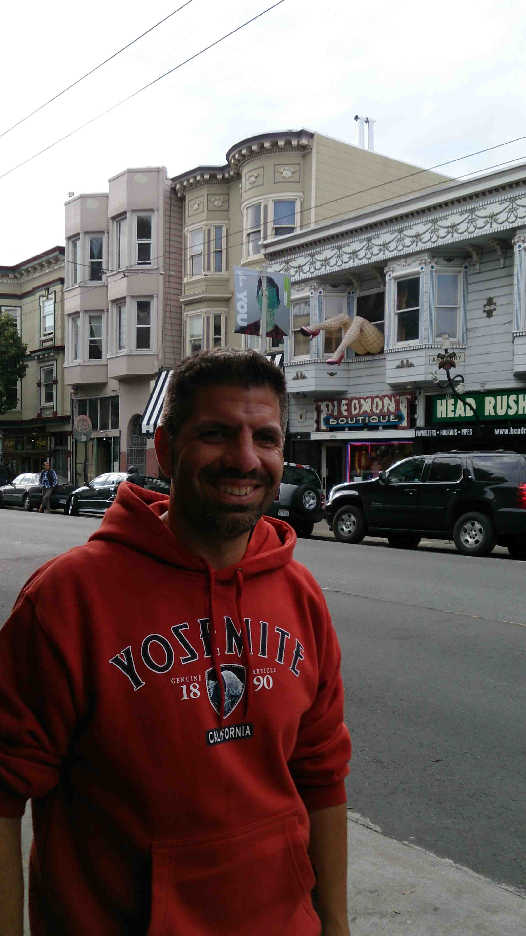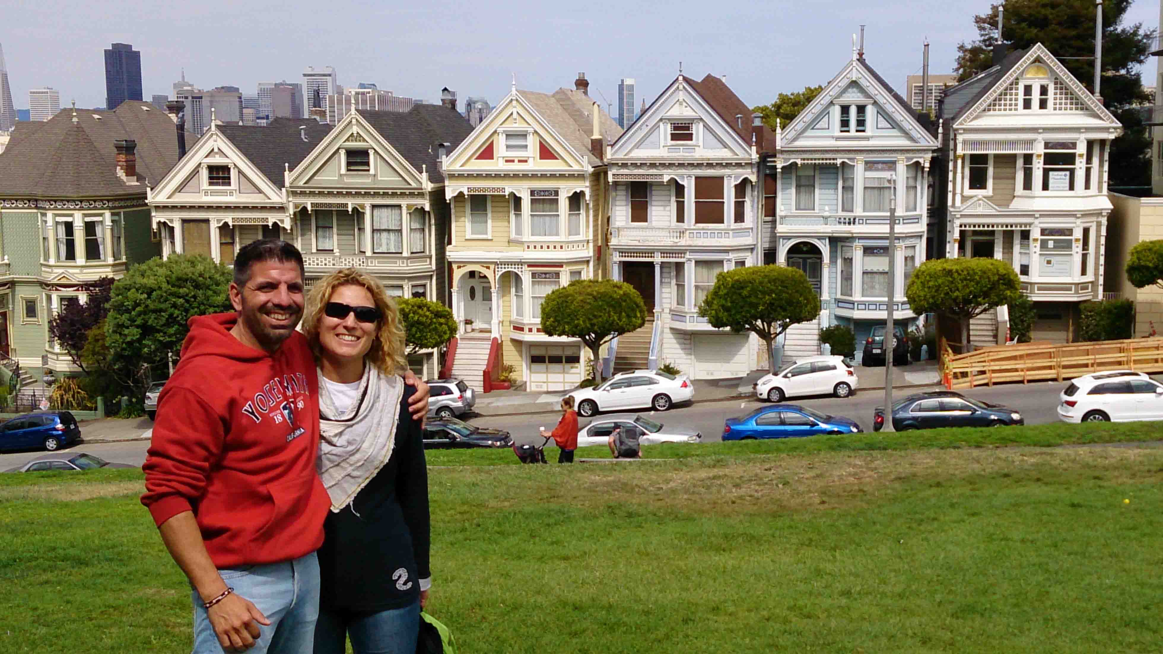 Una vez alojados decidimos dar una vuelta por los alrededores. Bajamos y paseamos por la zona de Civic Center (la zona financiera) donde se movía bastante gente y donde vimos bastantes vagabundos. Buscábamos un sitio para comer y al final decidimos comer una hamburguesa cerca de allí. Al salir, cogimos un autobus y nos dirigimos hacia Haight-Ashbury, a finales de 1960, Haight-Ashbury fue una de las zonas donde nació un movimiento bohemio; el de los idealistas hippies que practicaban una forma de vida en armonía con la naturaleza y fomentando los valores humanos. El barrio tiene casas con fachadas multicolores y un ambiente relajado, donde nuestra primera parada fue ver las famosas casas llamadas Painted ladies, casas de estilo victoriano y eduardiano pintadas en tres o más colores para embellecer sus detalles arquitectónicos que se hicieron famosas por salir en la famosa serie de televisión Padres Forzosos.