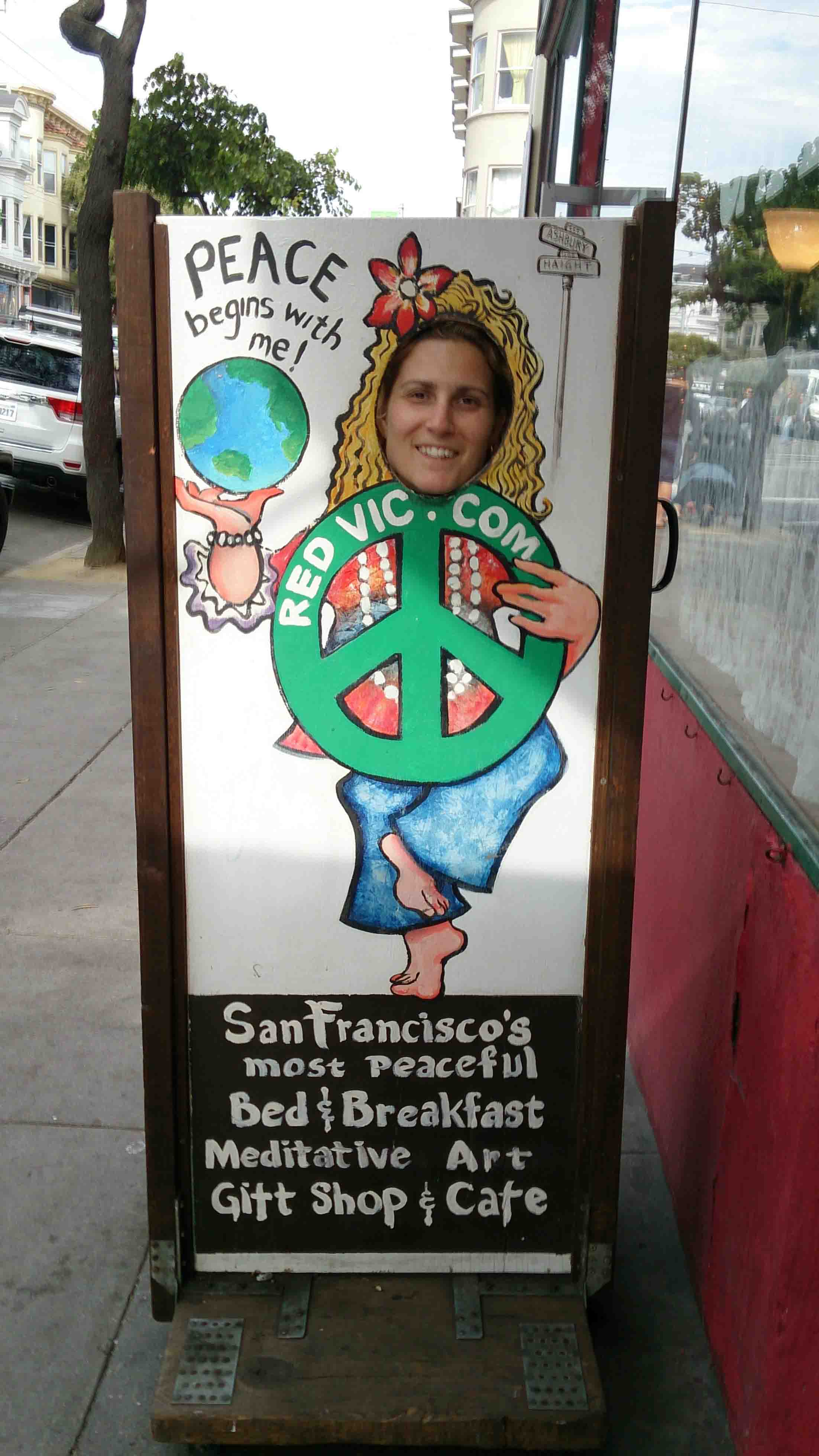 Tras comernos una manzana continuamos nuestro paseo por Haight Street, visitando miles de tiendas de ropa «diferente», comercios de artesanía y locales en los que escuchar música en directo. Si bien Haight-Ashbury se originó a partir de una corriente rebelde, hoy en día es un clásico que irradia paz y amor. Los edificios coloreados en tonos brillantes y los coloridos murales dejan claro el aire liberal que aquí se respira. Un barrio cuyos cafés y restaurantes se suman al movimiento orgánico y que le da la bienvenida tanto a hippies como a sobrevivientes en busca de monedas. Es un barrio que rinde homenaje al movimient o hippie: en sus calles encontrarás símbolos de la paz, pipas de agua y hierbas naturales. Esta zona es la ideal para aquellos que quieren experimentar diferentes aspectos de San Francisco en lugar de los lugares habituales para turistas. El barrio es muy tranquilo y disfrutamos mucho contemplando las hermosas casas llenas de personalidad de la zona.