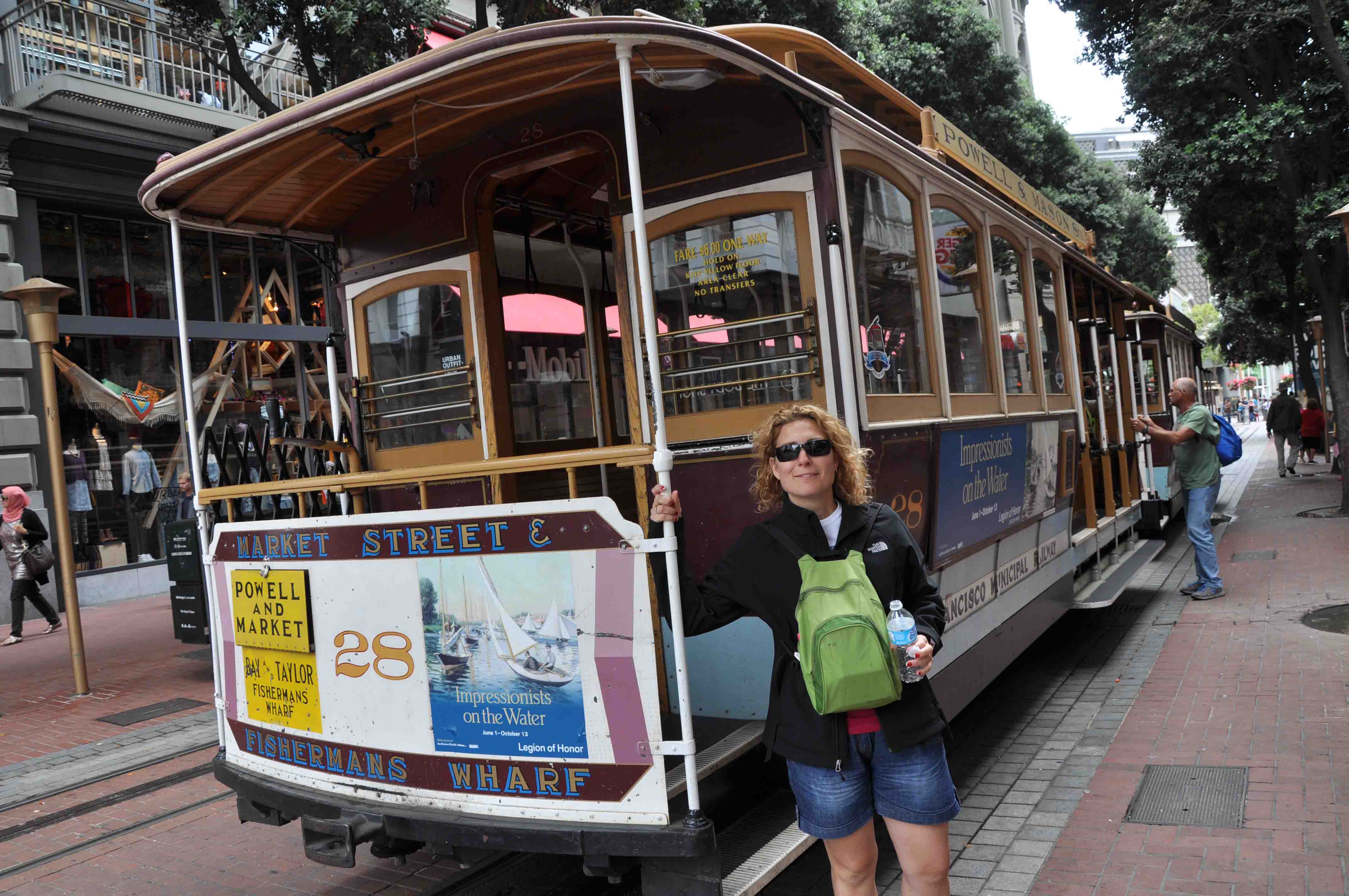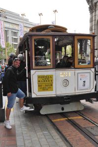 Al día siguiente nos levantamos temprano y nos dirigimos a coger el tranvía mas turístico de la ciudad, alojado cerca del centro de visitantes, donde tiene lugar el cambio de dirección manual del cable car. Mientras esperábamos, tras una larga cola, veíamos como hacen los operarios para dar la vuelta al tranvía, como el tranvía se sitúa sobre un plato giratorio; entonces el operario baja, y empuja al tranvía desde uno de los estribos, girándolo para iniciar el trayecto en la dirección contraria a la que había traído.