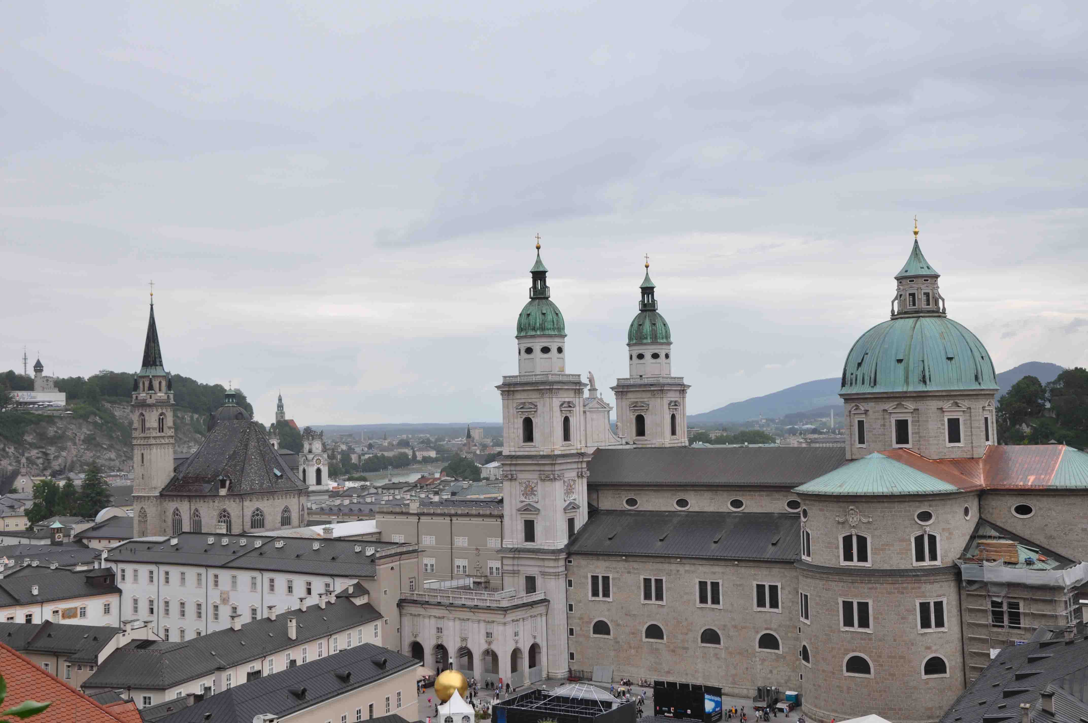 Llegamos muy temprano a Salzburgo y dejamos el coche aparcado en un parking que tenían acondicionado para los visitantes de la ciudad. Pronto nos pusimos en marcha, dirigiéndonos hacia el castillo que se veía desde lejos. El tesoro irrepetible que representa el casco antiguo de Salzburgo, es una verdadera joya arquitectónica con sus muchos estilos arquitectónicos, que se conservan gracias a las estrictas medidas de protección.
