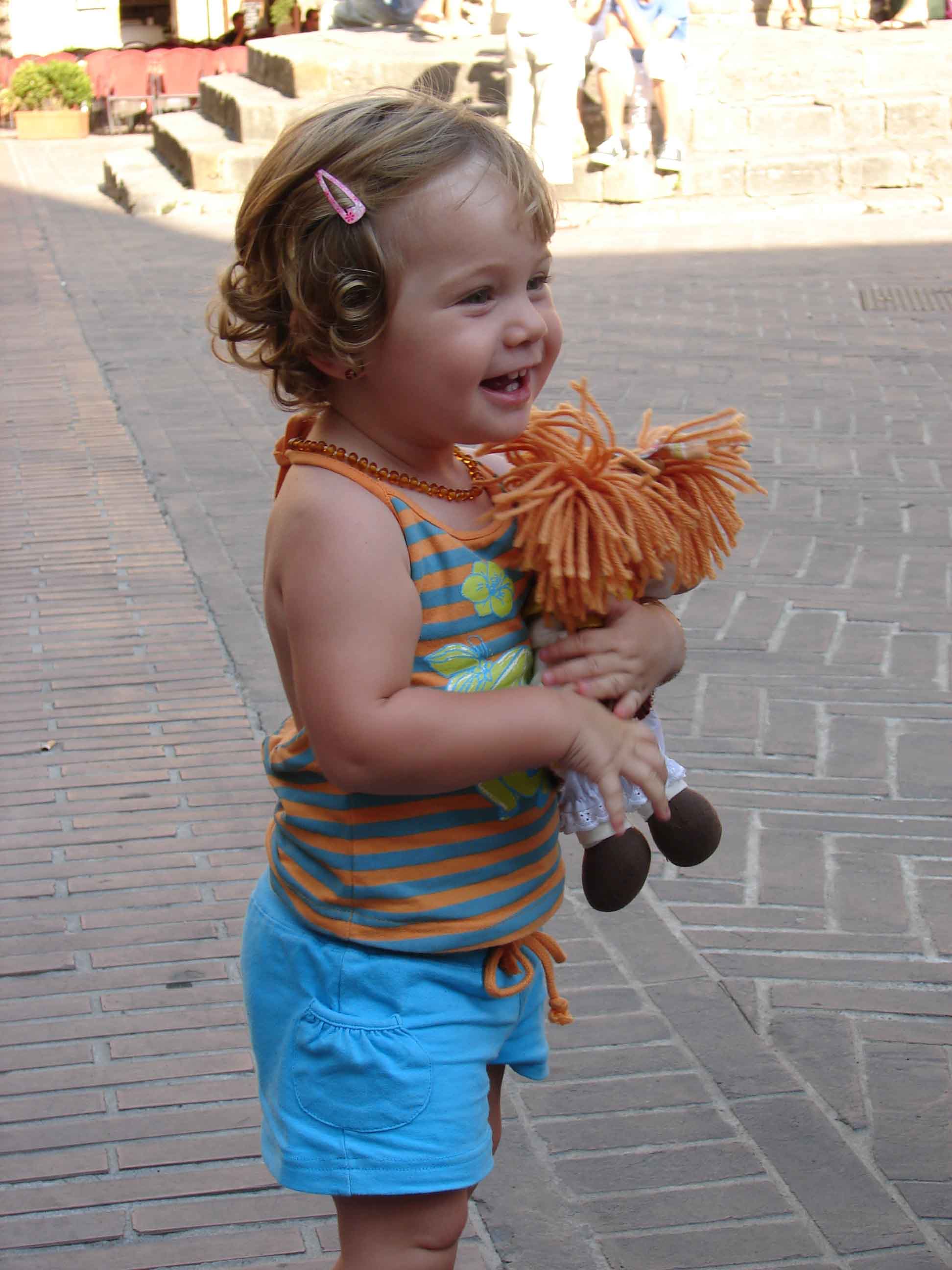 Continuamos recorriendo las calles empedradas de la Via de San Matteo hasta llegar a una tienda donde compramos una muñeca que le encantó a la peque y que le acompañaría durante muchos años ( Robertta).