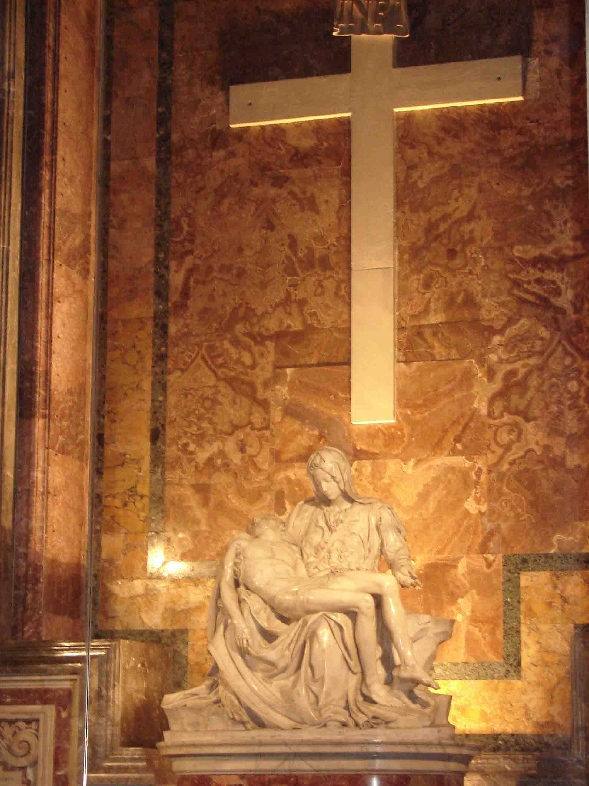 Pudimos entrar de uno en uno ya que no podíamos entrar con carro de bebe, y pudimos apreciar el Baldaquino de Bernini, La Piedad de Miguel Ángel y la estatua de San Pedro en su trono. Esta última con el pie derecho desgastado por los besos de los fieles. Se habla que la basílica se encuentra situada sobre el lugar de entierro de san Pedro (uno de los doce apóstoles). La tradición y las evidencias históricas y científicas sostienen que la tumba de san Pedro está debajo del altar mayor de la basílica; por consiguiente muchos papas han sido enterrados aquí mismo.