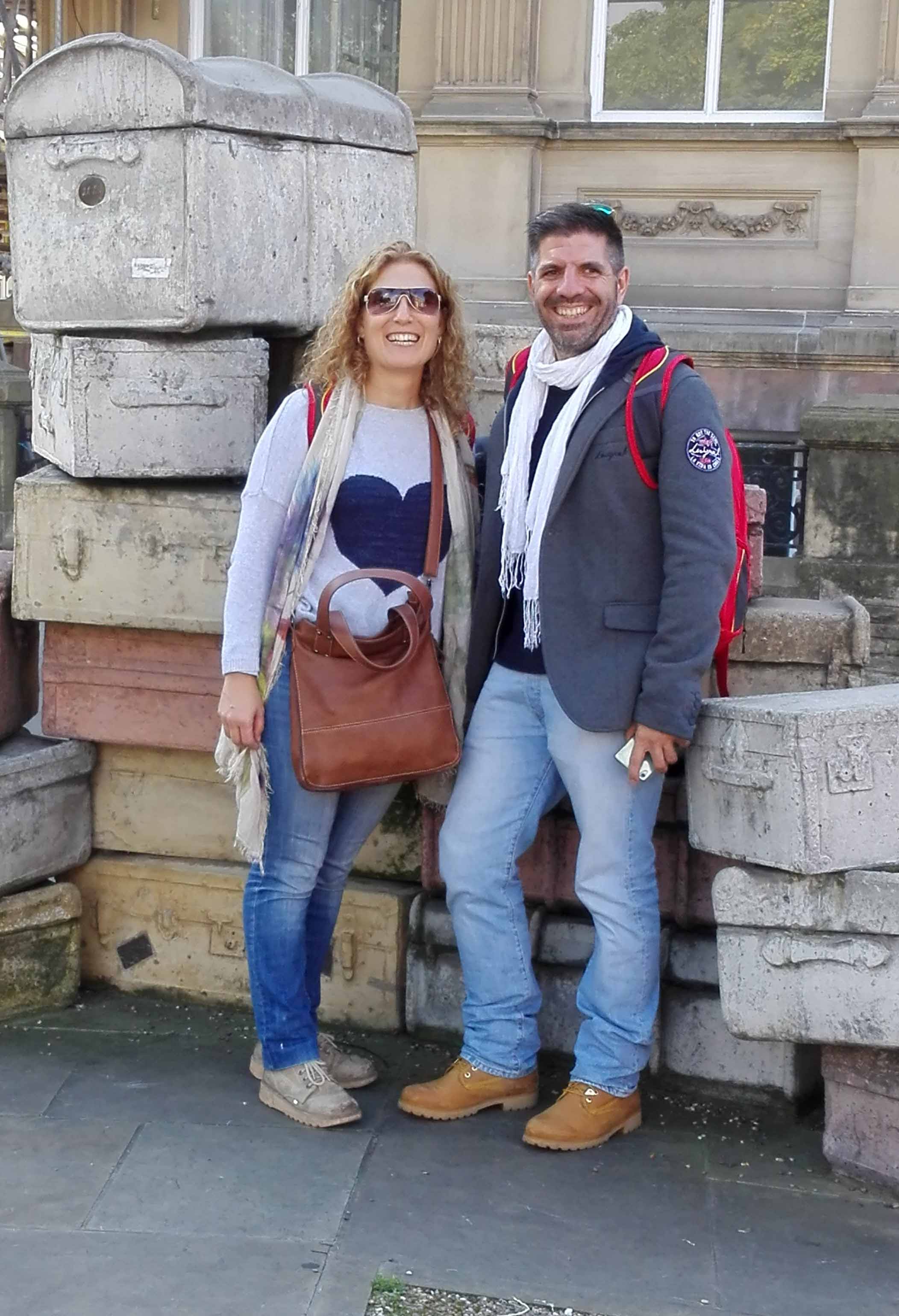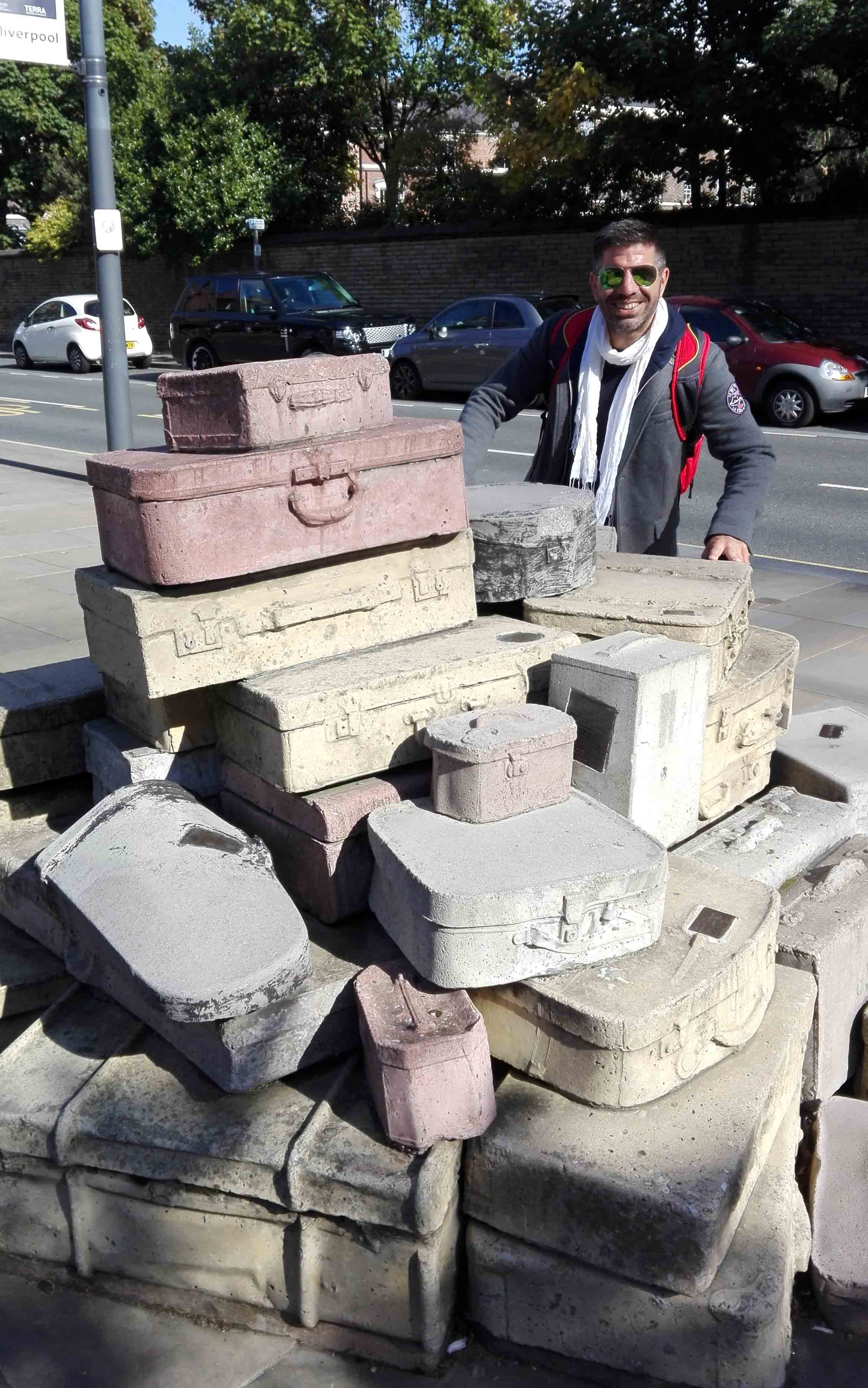 Volvimos sobre nuestros pasos y giramos por la Hope St. camino la otra catedral de Liverpool, la católica. Antes de llegar nos encontramos con las famosas maletas de Hope St. que forman parte del art walk de la ciudad. Diseñado por John King (1998) se encuentra exactamente en el cruce de Hope St. con Mount St., al lado del LIPA y el Liverpool School of Art. Esta obra llamada A Case History se trata de un conjunto de maletas formando un círculo y agrupadas en montones, de colores, desgastadas y sucias, dando una imagen de viejas. Todas poseen una etiqueta de quién perteneció, personajes y organizaciones residentes en la ciudad.