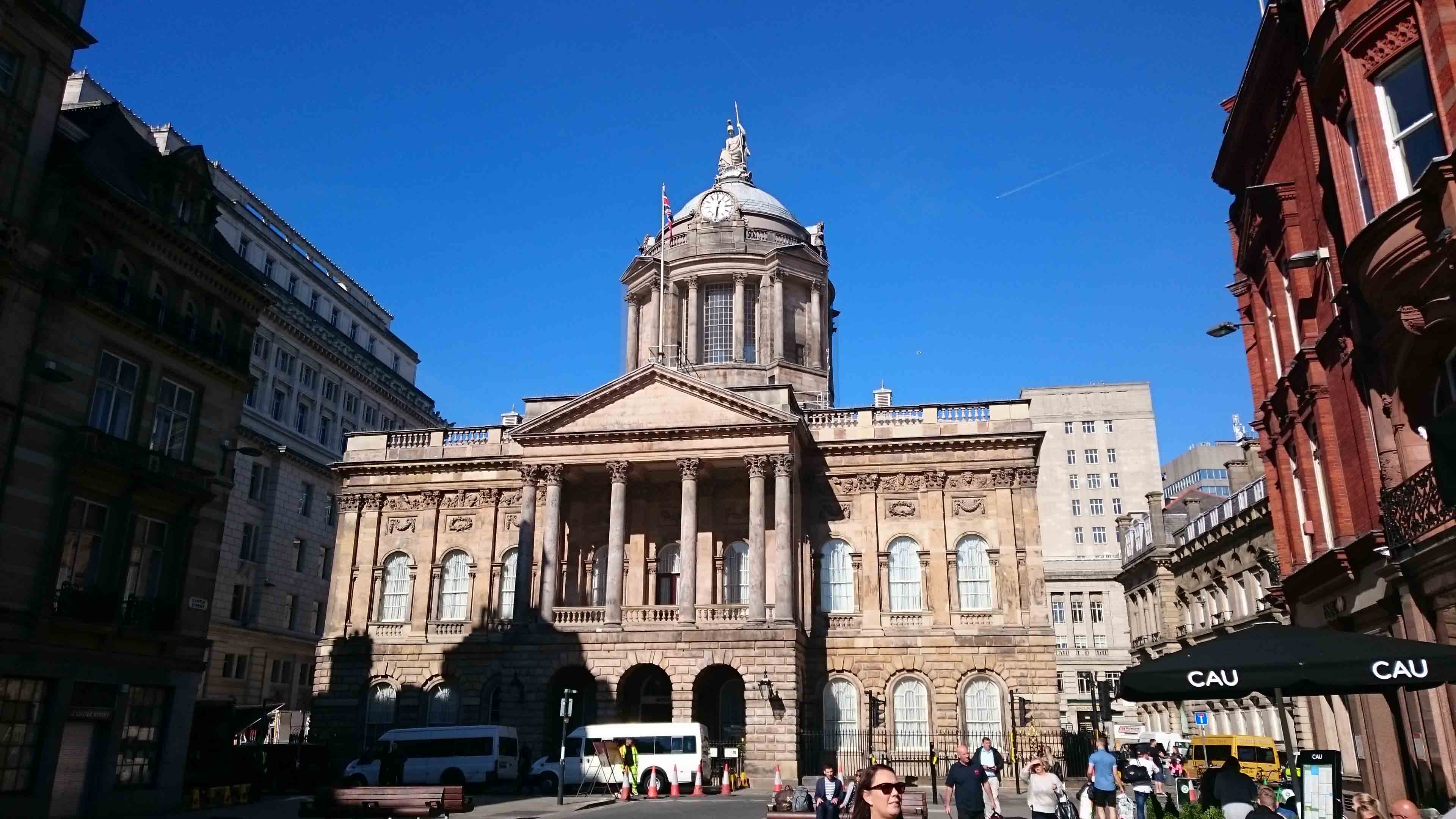 Nada mas cruzarlo nos encontramos en la Derby Square con el monumento a la Reina Victoria. Nos dirigimos hacia la izquierda y paseamos hasta llegar al Ayuntamiento que se presentaba imponente delante de nosotros. Recorríamos todas estas calles con estos edificios tan monumentales y empezabamos a subir la única colina de Liverpool.