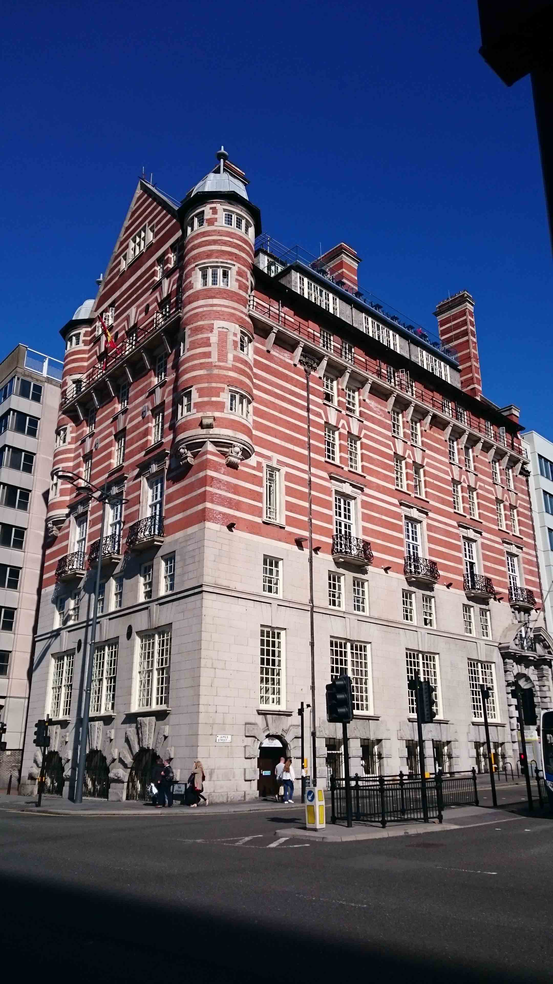 A partir de aquí, empezamos a recorrer la zona mas monumental de Liverpool. Lo primero que nos encontramos fue con las tres gracias. Así se conoce al conjunto formado por los edificios The Port of Liverpool (1907), Royal Liver (1911) y Cunard (1914), declarados Patrimonio de la Humanidad. El que nos gustó más fue el Royal Liver, donde sobresalen dos Livebirds en lo alto de sus torres, la hembra mirando hacia el mar y el macho hacia la ciudad. Al pasar al lado de ellos nos encontramos de frente con otro importante edificio con historia, el White Star Line Building. La antigua sede de la empresa de transporte responsable de la construcción del Titanic.