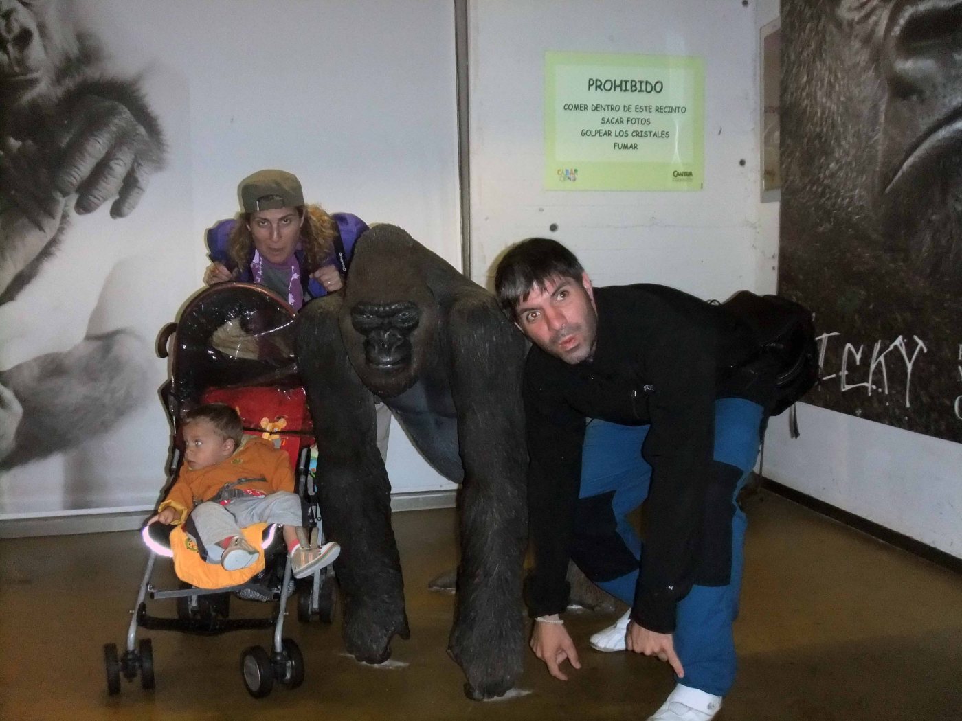 Nada más entrar, la suerte nos dio un revés y se puso a llover. Suerte de este parque que puedes desplazarte con tu propio coche de una zona a otra. Así llegamos a la zona de los gorilas, donde al ser un sitio techado pudimos verlos sin mojarnos y así esperar haber se escampaba fuera. Al salir, el tiempo nos dio una tregua y pudimos disfrutar un poco del parque viendo en «casi» su habita natural diferentes animales del parque.