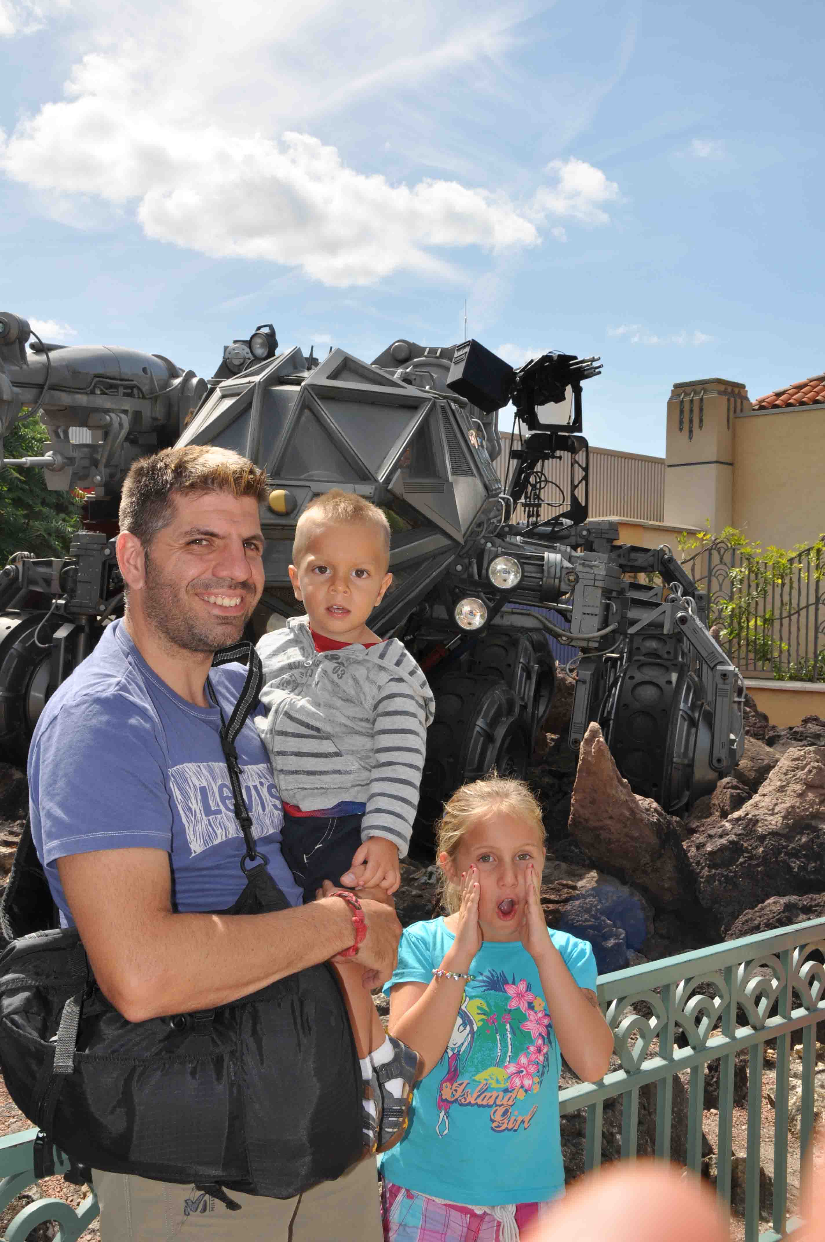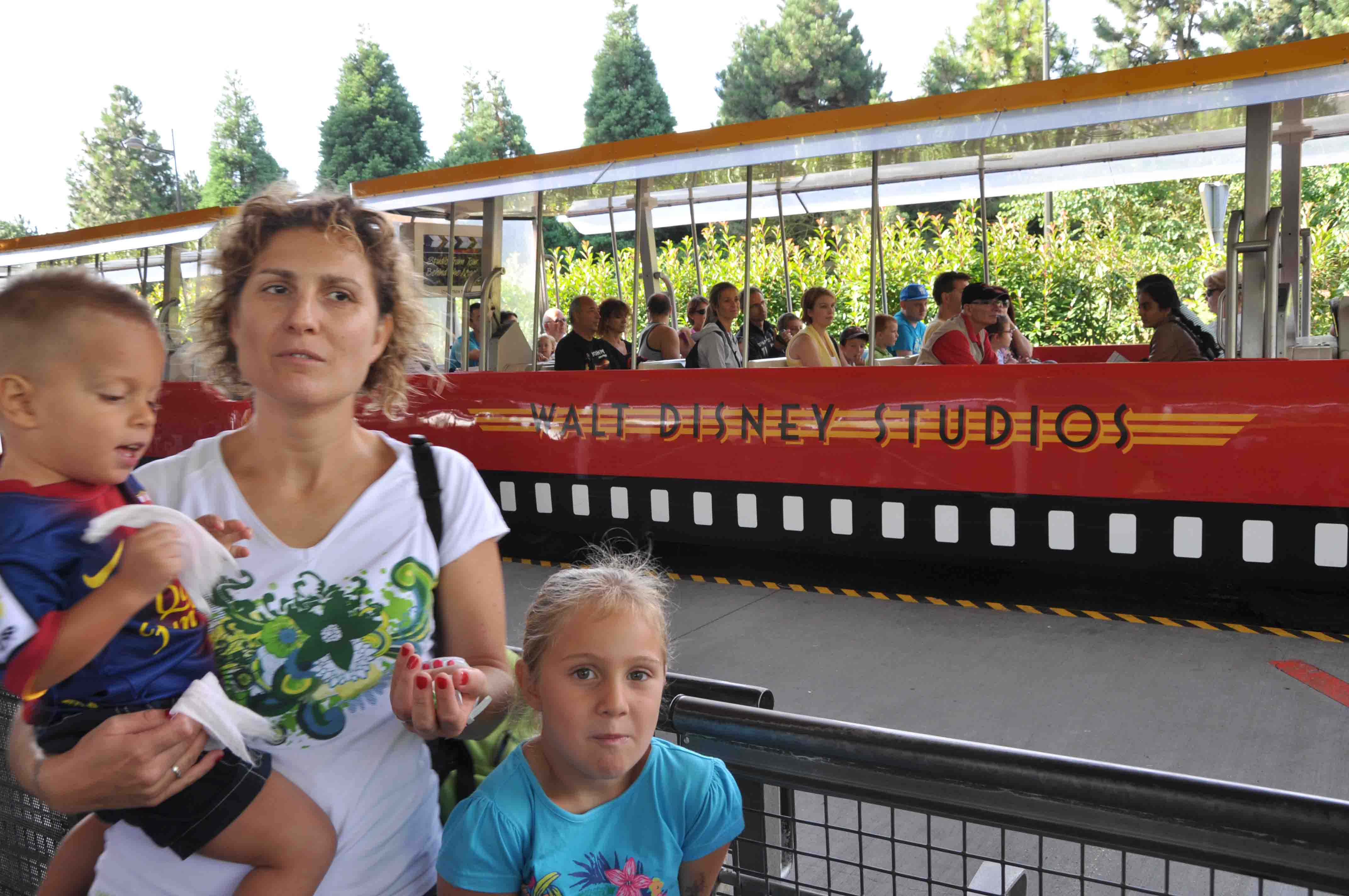 Cruzamos la nave y salimos a lo que es en realidad el parque, nos dirigimos derechos a probar una de las atracciones con mas gente. Un tren en cuyo recorrido vamos viendo maquetas de las películas de Disney. En cierta parte del recorrido, el tren se para y somos victimas de una escena de película ( ver el vídeo si queréis saber de que se trata).