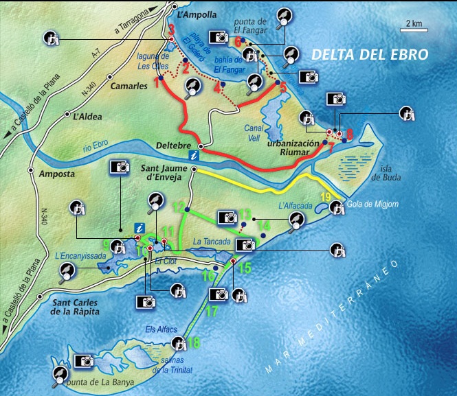 Oficina turismo del Delta del Ebro (Av. Goles de l’Ebre s/n) Telf. 977 489 309