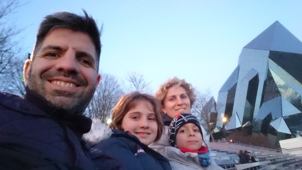 Seguimos disfrutando del parque, entramos a ver una actuación de magia (imagic) que nos hizo aparecer un avión y un helicóptero, después a varios cines imax con proyecciones del futuro, del Mundo Minúsculo (El mundo de lo invisible), del Océano (de Jacques Costeau) y del espacio (Colisiones cósmicas). También entramos a un espectáculo circense con Kube que nos gustó mucho. Y al final nos montamos en unas bicicletas flotadoras…