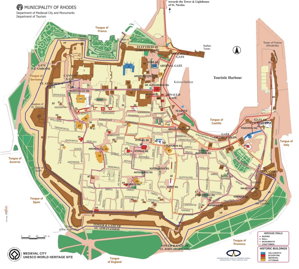 Lo primero que vimos al llegar a la ciudad fueron sus magnificas murallas, construidas por los Caballeros Hospitalarios de San Juan de Jerusalén. Fuera de ellas, contiene un magnífico puerto que, tiempo atrás fue de especial importancia del mar Mediterráneo.