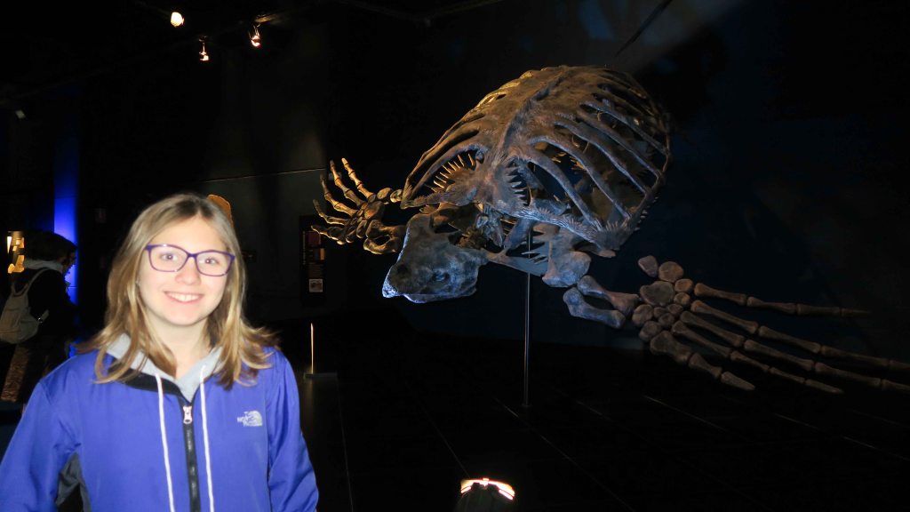 Antes de ir a comer, entramos en el Museo Paleontológico de Teruel, con más de 3.000 metros cuadrados de exposición con fósiles de todos los lugares del planeta y donde pudimos ver como trabajan los científicos. Al llegar al final, salimos a la sala de Dinofotoaventura, maquillaje y manualidades para los mas peques.