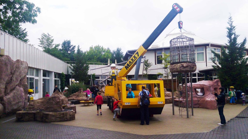 Se nos hizo la hora de comer y nos dirigimos a una de las zonas cubiertas del parque, el HOB Center, un inmenso edificio de 5000m², con multitud de zonas para jugar con los Playmobil. Cajas de juguetes a disposición de los niños para que disfruten a su aire.