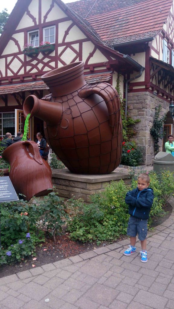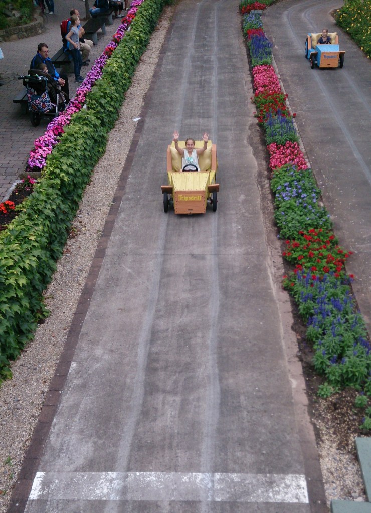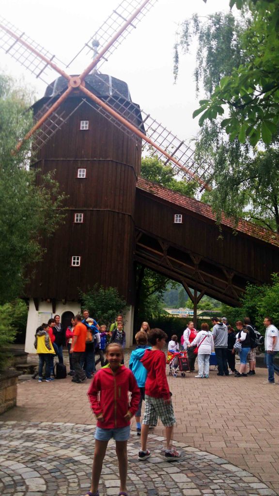 Justo al lado encontramos la primera atracción que se construyó en el parque, el Altweibermühle. Continuamos con otra atracción, el Doppelter Donnerbalken, donde entras en una forma de tronco y te sube quince metros, luego se inclina hacia adelante y baja de nuevo en caída libre.