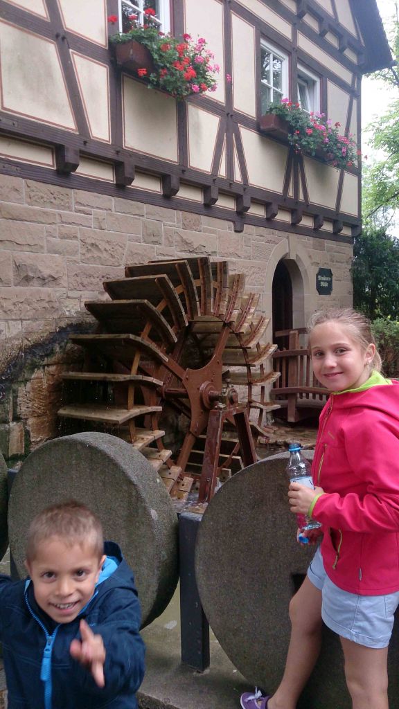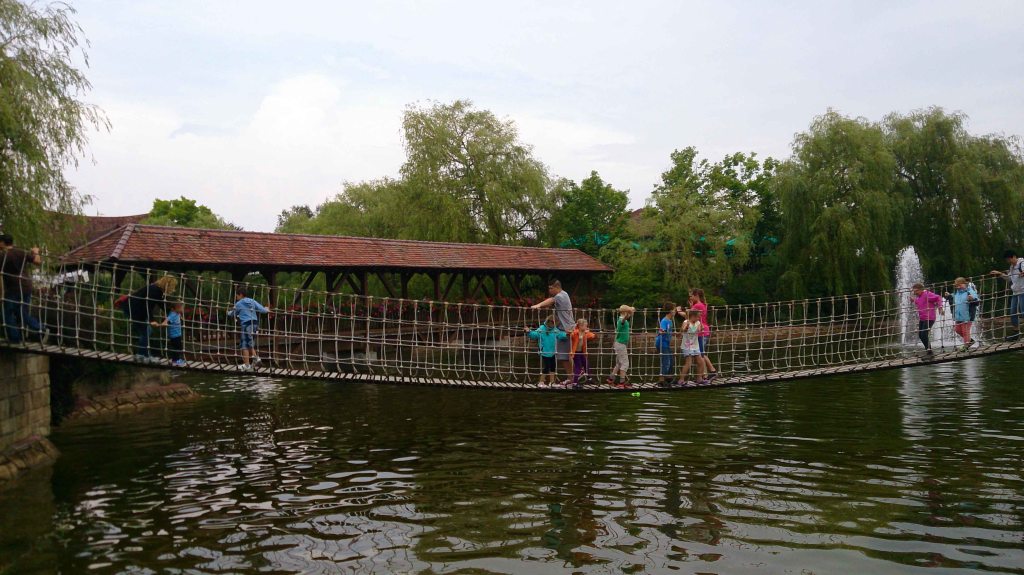 La siguiente atracción, nos montamos en sacos de harina antes de descender la pendiente de 3,5 metros, era la atracción acuática de Mühlbach-Fahrt.