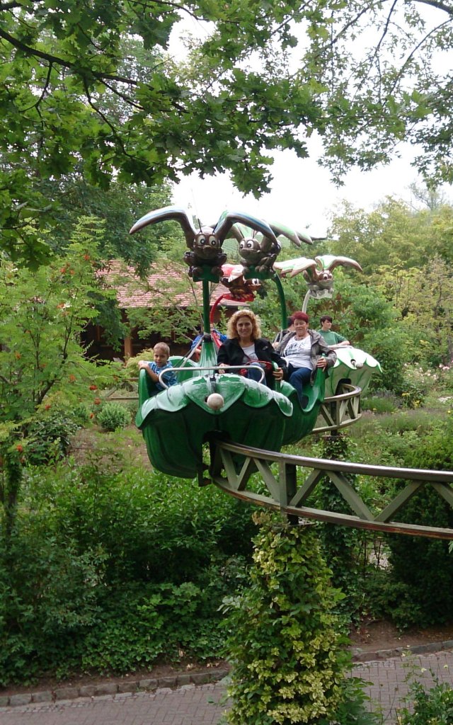 Ahora entramos en una zona con atracciones aéreas y otras con aspecto de animales. Encontramos la Torre de mariposas Schmetterlingsflug, en la ruta de los animales Moggelesbahn, la estación de metro Wiegen-Hochbahn,….