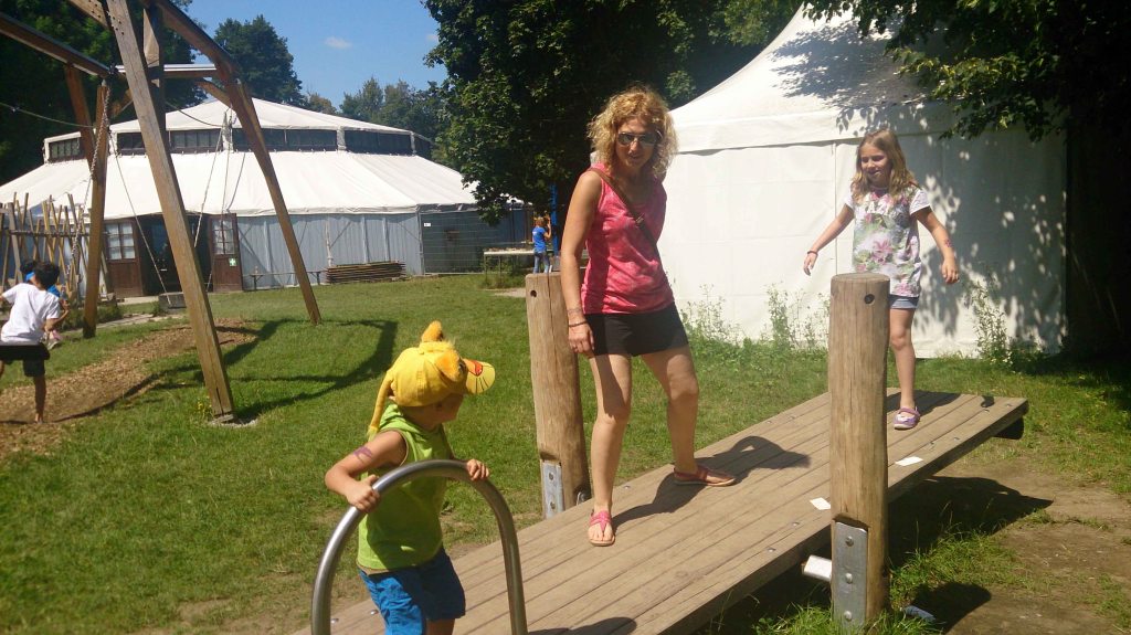 Nosotros dejamos el coche en el estacionamiento de la estación y en poco tiempo estuvimos a la entrada del parque. Nada mas entrar encontramos las primeras atracciones, donde podíamos columpiarnos, andar descalzos por circuitos, subirnos a plataformas o montarnos en péndulos.