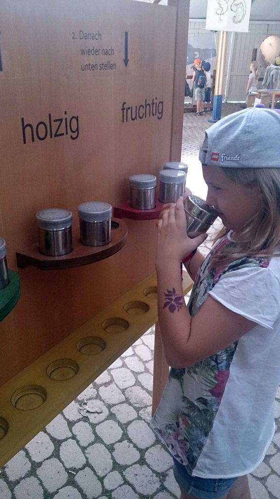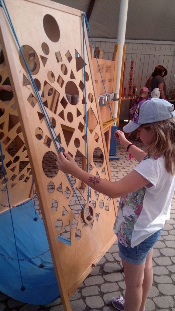La atención está centrada en la propia experiencia y el propio hacer en experimentos, ejercicios y juegos. En cada parte del parque siempre hay un empleado del parque quien, te ayuda en la orientación y apoyo en cada atracción. Entramos en una carpa donde experimentamos con diferentes texturas, olores, formas con el agua, el viento, juegos de destreza…