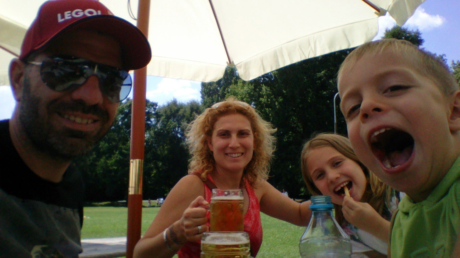 Llegaba la hora de comer y ya habíamos acabado en el parque, nos dirigimos, nada más salir, al gran prado adyacente conocido como Wöhrder Wiese. Había unos puestos de comida, nos sentamos en una mesa y comimos de maravilla.