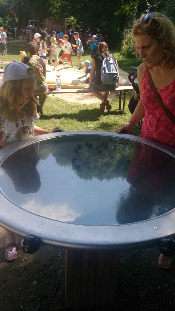 Practicamos nuestra destreza con grandes plataformas para colocar las canicas en su interior. El parque se llenaba rápidamente, por la tarde es más tranquilo ya que, la mañana la ocupan grandes grupos de colegios.