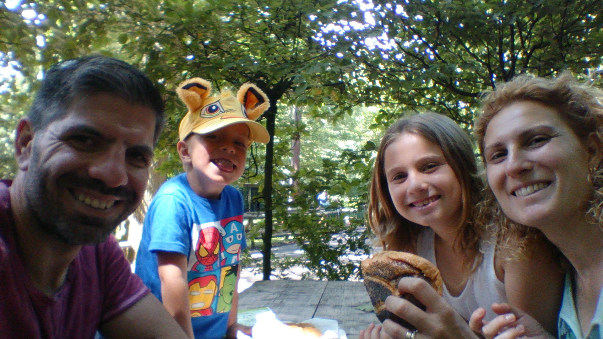 Antes de pararnos a comer, nos montamos en el popular tren Kleiner Adler, una fiel reproducción a escala 1:2 del primer ferrocarril alemán. El tren nos hizo un recorrido de dos kilómetros, pasamos junto al cercado de las jirafas y por debajo de la laguna de los delfines hasta llegar al zoo infantil, después dio media vuelta y nos regreso al inicio. Desde allí nos dirigimos a una zona de picnic del zoo para comer. Después de comer acabamos nuestra visita al parque, visitando algunos animales que nos faltaban.
