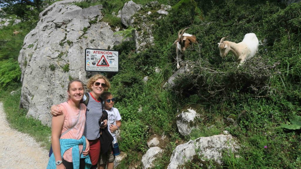 Las vistas de la ruta son impresionantes donde, iremos cruzando el extraordinario desfiladero del río Cares. En seguida, nos encontramos con cabras montesas, en todo el recorrido nos las vamos encontrando. Hay que tener cuidado con ellas ya que, están acostumbradas a que la gente le de comida y no tienen reparo para abalanzarse sobre ti en busca de su premio.
