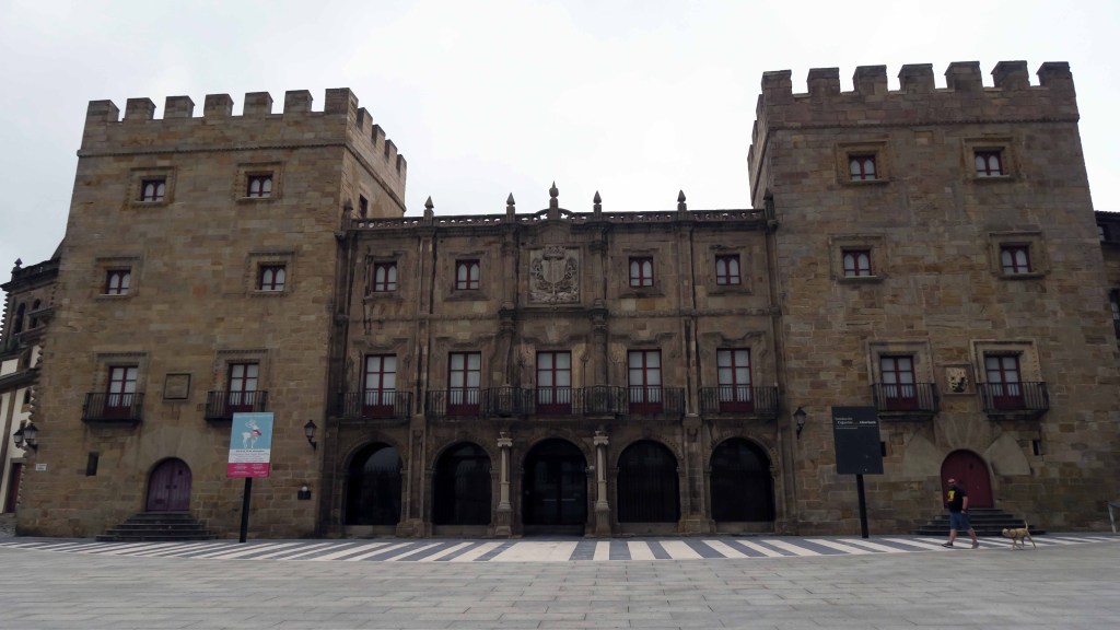 Tras cruzar la carretera, llegamos a la Plazuela del Marqués, presidida por el Palacio de Revillagigedo. Construido a partir de una torre medieval en el siglo XVIII. Hoy en día, junto con la anexa Colegiata de San Juan Bautista, alberga el Centro Internacional de Arte. En el centro de la plaza nos recibe la estatua de Don Pelayo, como homenaje al primer rey de la Monarquía Asturiana.