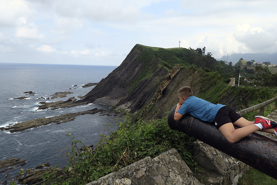 Desde allí, teníamos una perfecta situación de vigía. Por un lado Ribadesella, la desembocadura del Sella, con su playa de Santa Marina al fondo y por el otro lado los acantilados que daban al Mar Cantábrico (los pedrales).