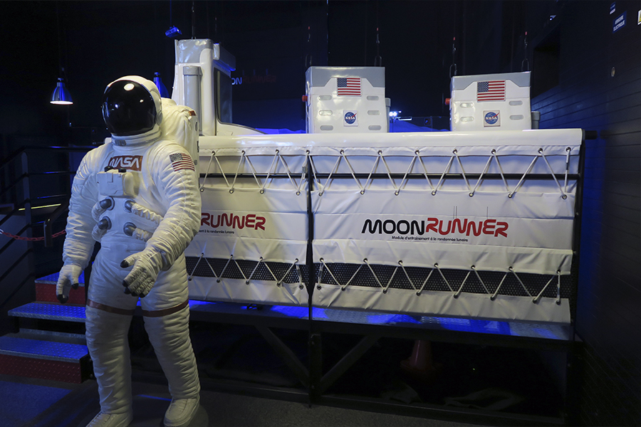 Después de comer en el Café Astronaut, acabamos nuestra visita, aumentando nuestros conocimientos en las Exposiciones. Destacando la gran interactividad y sentido didáctico en sus distintas áreas temáticas repartidas en 4 niveles. En el nivel -1 encontramos la mas popular, el Moon Runnen en la Sala de Entrenamiento, donde puedes experimentar la sensación de los astronautas al caminar sobre la luna mediante un simulador.