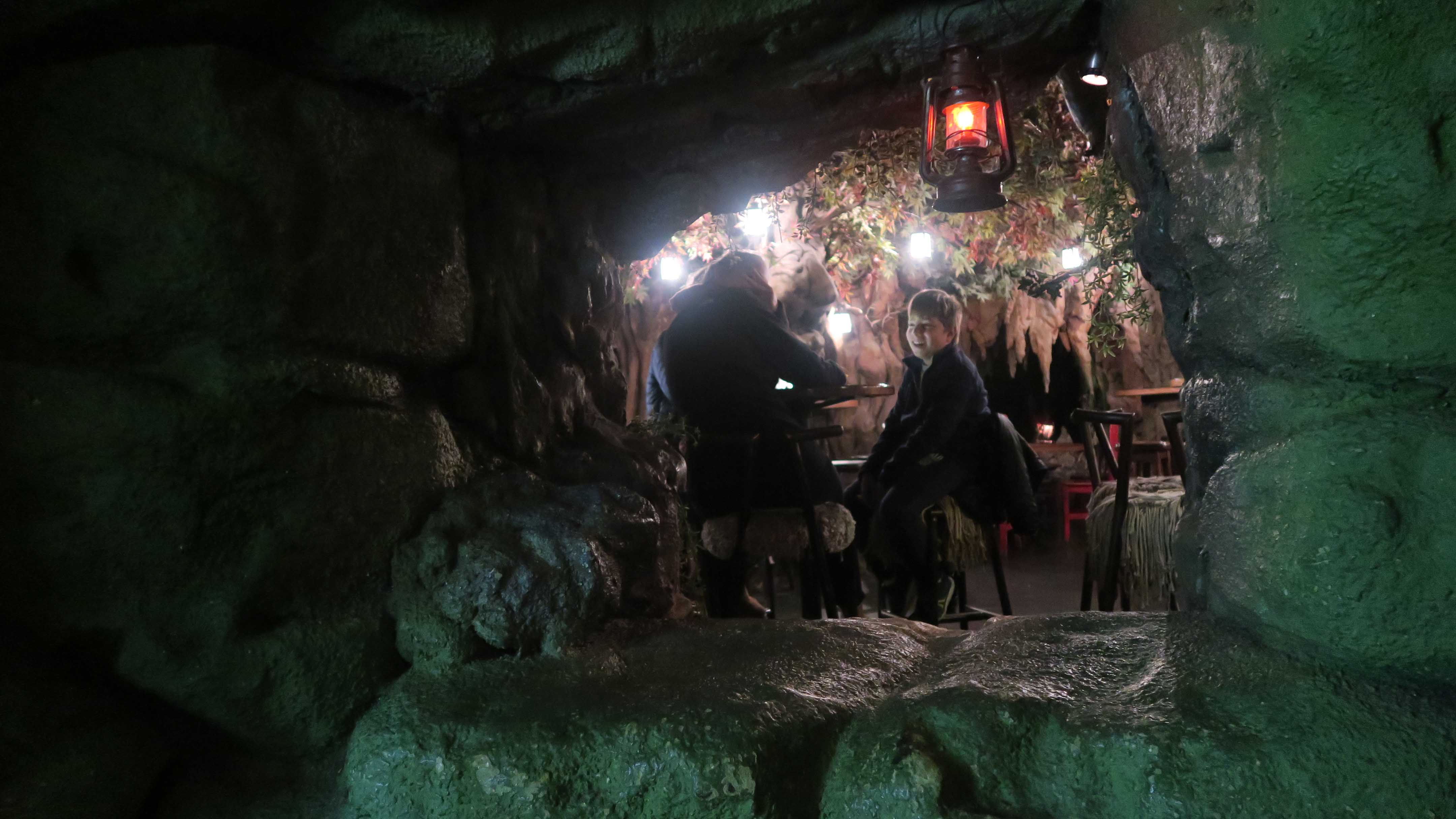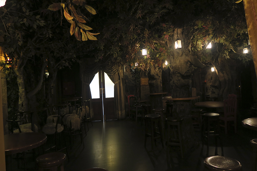 El café forma parte del Museo de Cera y sobrepasa los 25 años desde su inauguración y está dividido en varias salas con temáticas diferentes. La principal, decorada con un gran bosque, con árboles plantados y ramas increíbles que casi no nos dejaban ver el cielo estrellado.