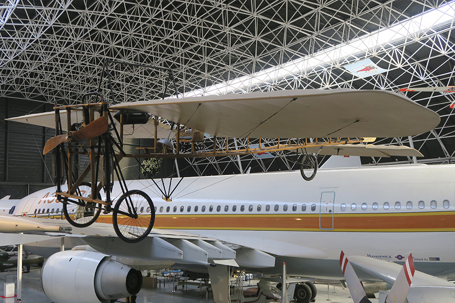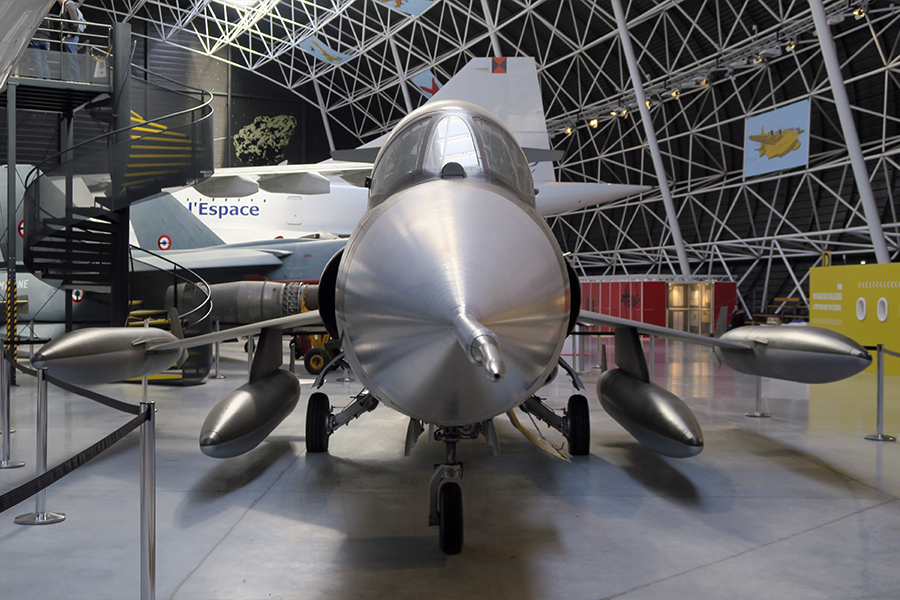 Seguimos con un mosaico de aviones de todas las épocas, como un Blériot XI (el primer avión que cruzó el canal de la Mancha en 1909) o el Mig-15 en el centro de esta enorme sala. Los acompañan, entre otras máquinas emblemáticas, un Caravelle, el F104 Starfighter o el Vought F-8 Crusader.