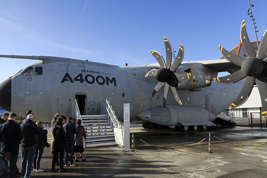 Para terminar, salimos fuera del hangar y nos encontramos con el Airbus A400M Atlas, un avión de transporte militar polivalente, diseñado por Airbus Military para dar respuesta a las exigencias del transporte militar moderno. Este gigantesco modelo fue bautizado con el nombre de Grizzly por los ingenieros del departamento de pruebas en vuelo. Pudimos entrar en su interior, donde una guía, ofreció una explicación del aparato.