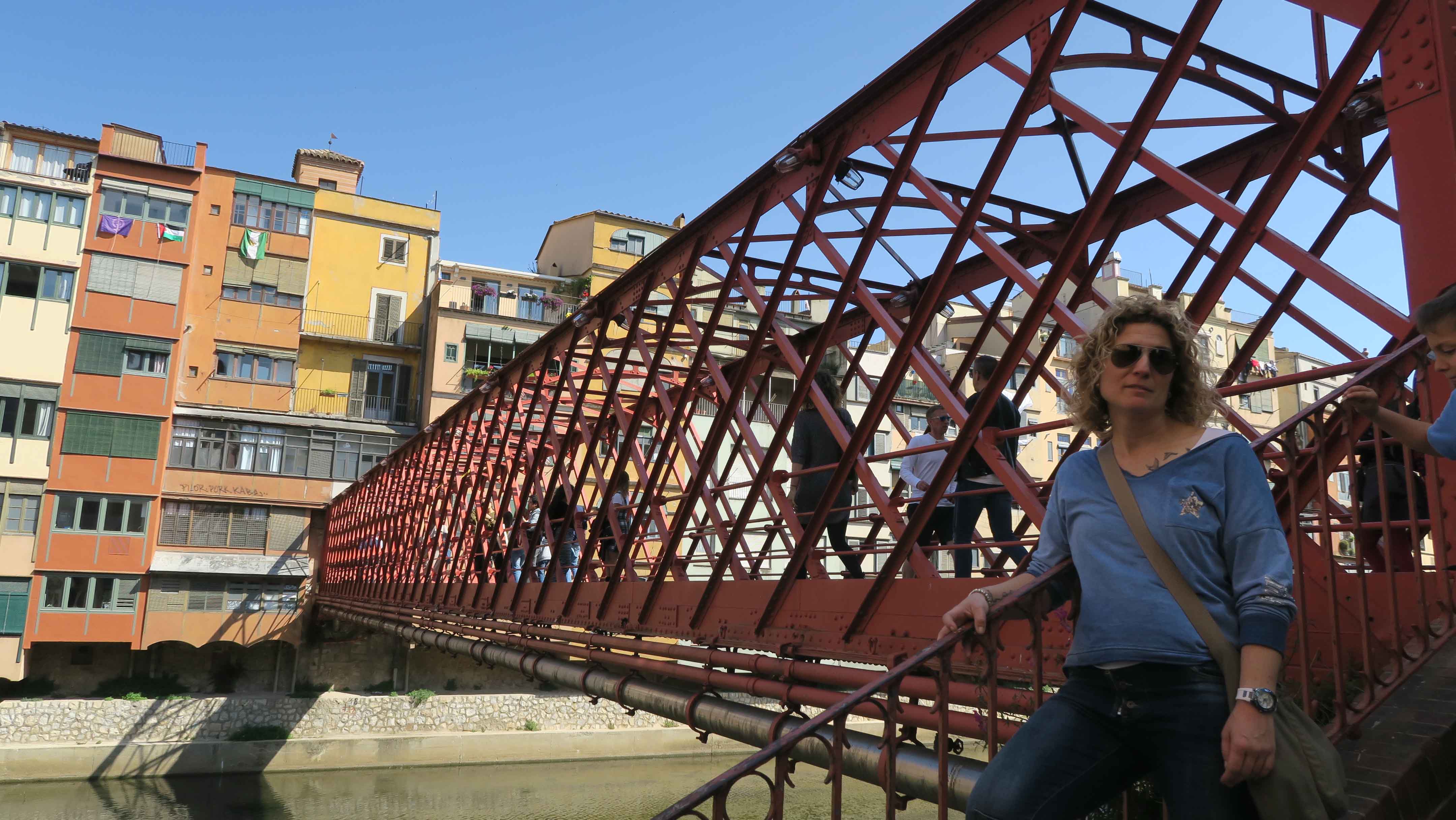 Cruzamos el río Onyar por este puente peatonal metálico, diseñado por el taller de Gustave Eiffel, también llamado Pont de Ferro. Fue diseñado años antes de la mítica Torre Eiffel. Desde el puente, pudimos observar las Casas del Río Onyar.