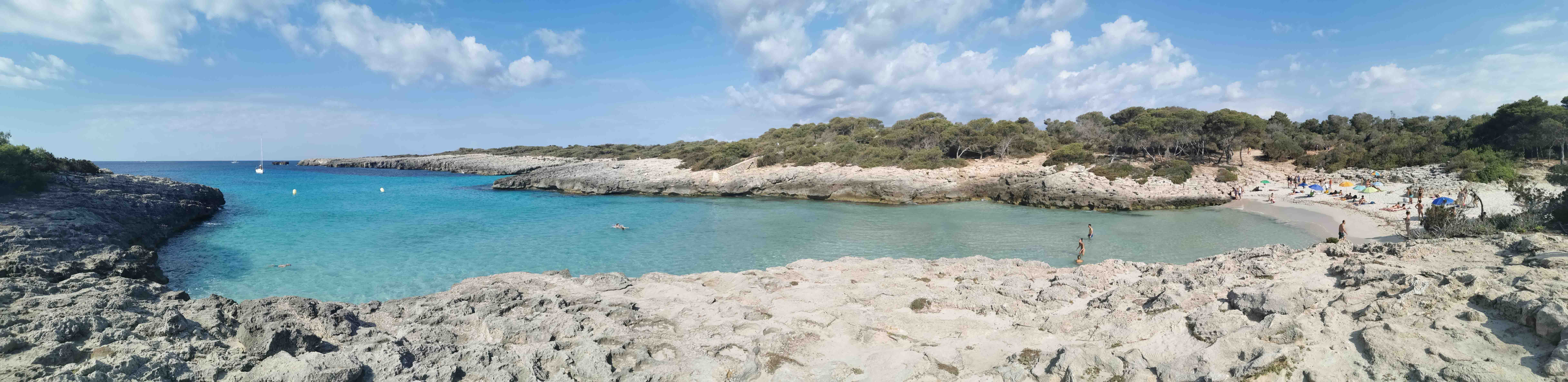 Así hicimos y en poco tiempo llegamos a la Cala Des Talaier. Con unas dimensiones de tan solo unos 50 metros de longitud por unos 80 metros de ancho, nos pareció una cala increíble. Con muy poca profundidad, donde puedes adentrarte bastante sin que te cubra por completo. Además de tener gran cantidad de arena por lo pequeña que es la cala.