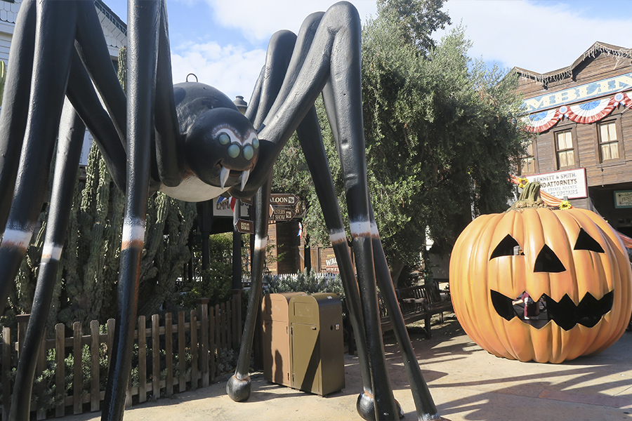 Continuamos bajando y llegamos al área del Far West, repleta de calabazas por todos los rincones. Grandes, medianas y pequeñas, decoraban el mas mínimo rincón del oeste. Es aquí, donde encontramos gran cantidad de personajes disfrazados. Nos perseguían, nos observaban, nos asustaban e incluso querían jugar con nosotros. Sobretodo nos gusto, la niña del exorcista.