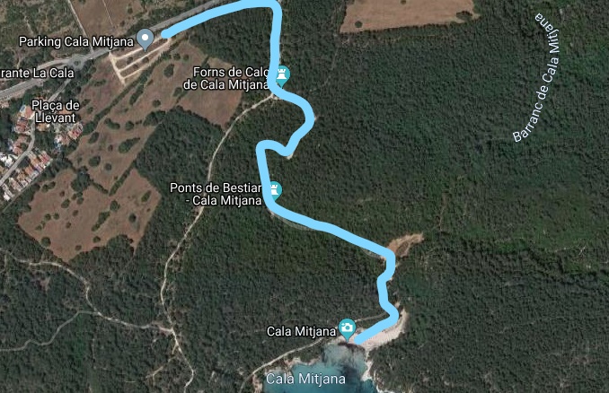- La Cala Mitjana nos permite acceder a muchas de las playas del sur, como Cala Trebaluger, Cala Fustam, o Cala Escorxada, pasando por el famoso Camí de Cavalls.