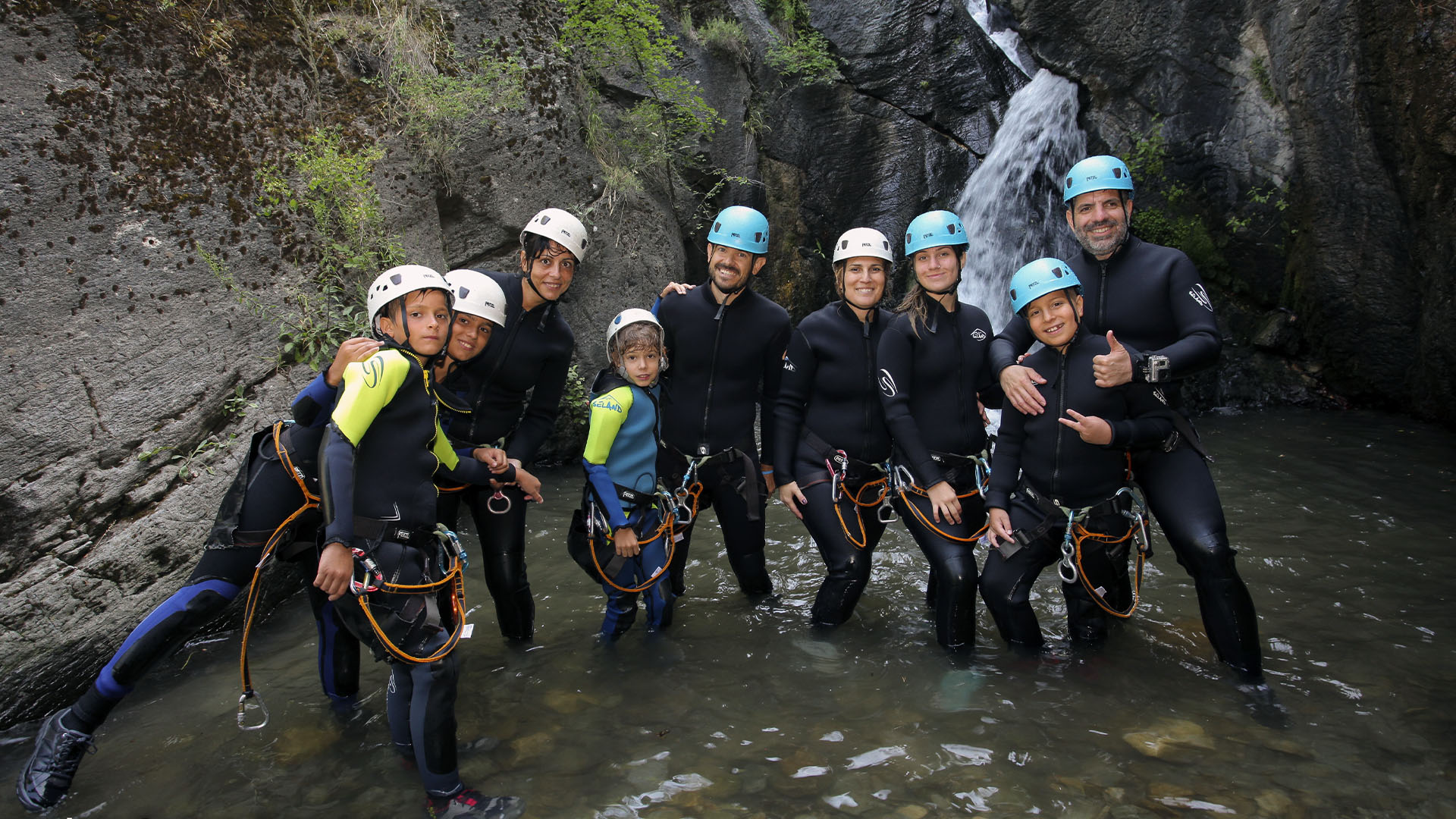 Nuestra primera actividad fue el descenso de barranco. Formado por conglomerado en el estrecho de Collegats, el Barranco de Sant Pere se encuentra a pocos kilómetros de Sort. Ideal para disfrutar con los peques o gente que no haya realizado nunca un descenso.