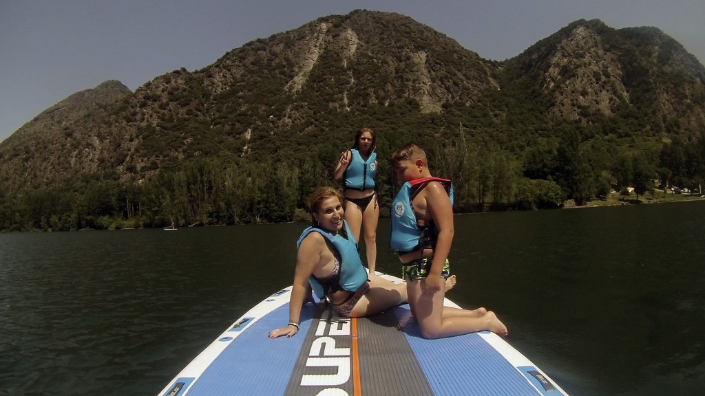 Enseguida le cogimos el gusto a remar y poco a poco, empezamos a jugar encima de la tabla, moviendo de un lado al otro, a ver quien conseguía permanecer encima de pie. Lo pasamos genial, pero también acabamos un poco cansados.